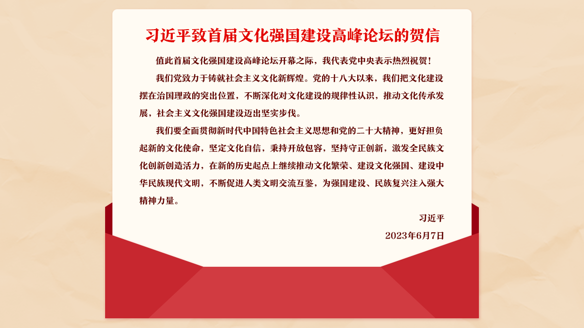 習(xí)近平致信祝賀首屆文化強(qiáng)國(guó)建設(shè)高峰論壇開(kāi)幕強(qiáng)調(diào)