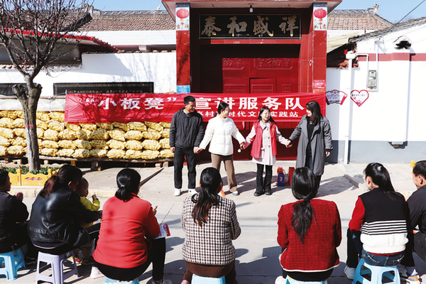 陈仓区巩家泉村新时代文明实践站文艺文化志愿者在新风堂广场开展活动。