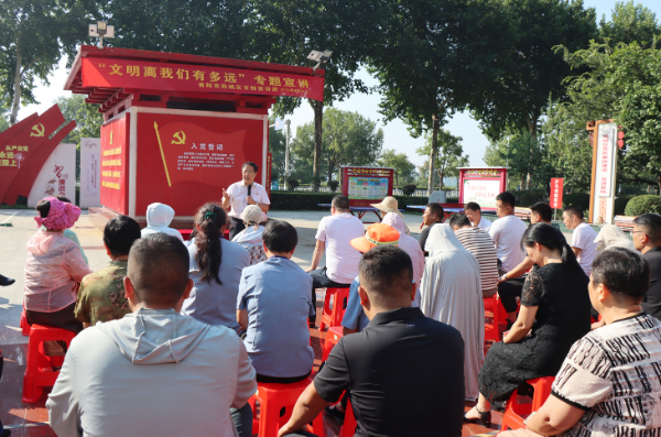 8月31日,梁海磊在河南省南阳市宛城区仲景街道泥营社区新时代文明实践广场开展宣讲活动。中国文明网 王泓凯 摄