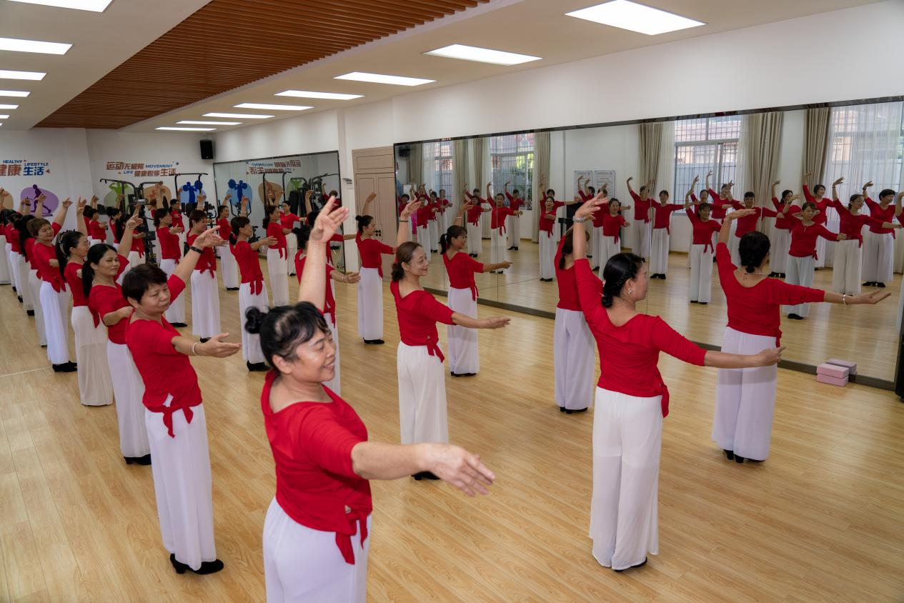 11月2日,在广西梧州市岑溪市新时代文明实践中心,居民正在排练舞蹈。新华网 钟奕 摄