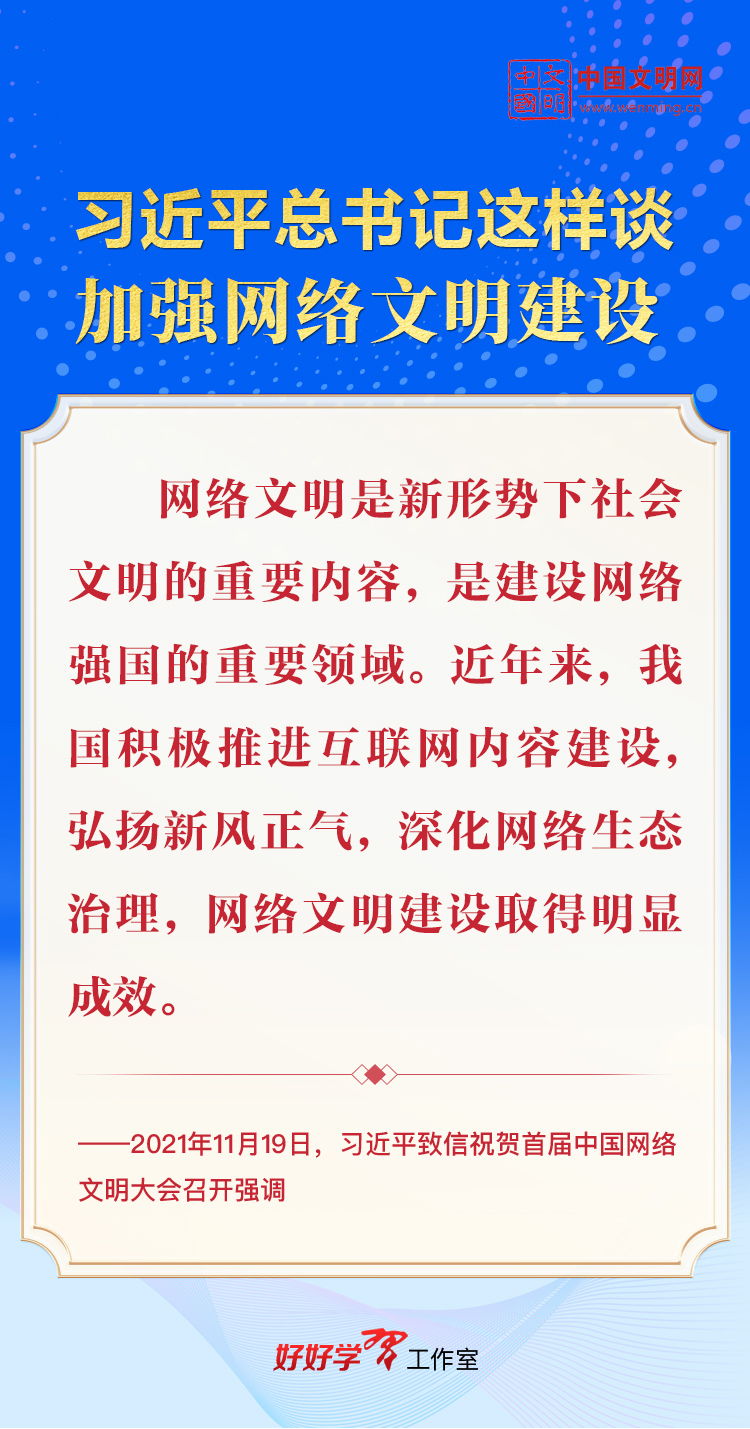 加强网络文明建设,是推进社会主义精神文明建设、提高社会文明程度的必然要求。习近平总书记高度重视网络文明建设,多次就加强网络文明建设作出重要论述,为新时代网络文明建设工作指明了前进方向、提供了根本遵循。让我们一起学习,共建网上美好精神家园。