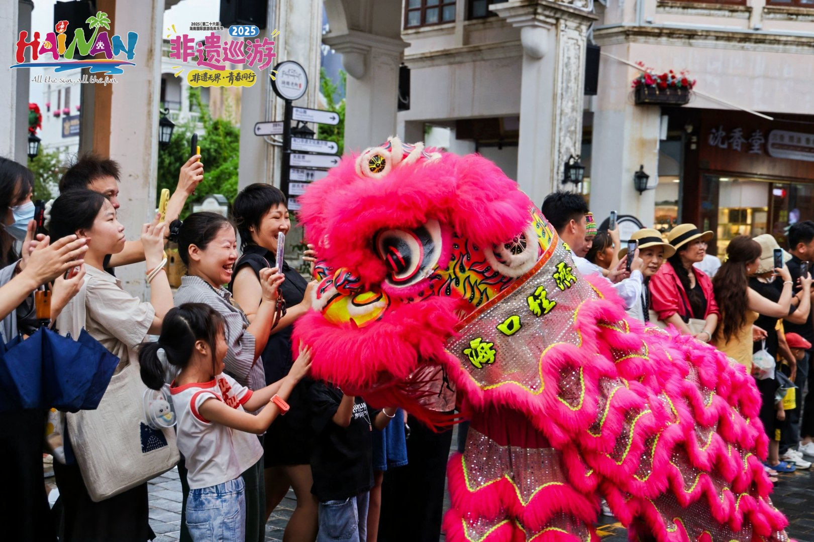 8月30日,市民和游客的观看热情高涨。巡游从海口骑楼老街水巷口出发,沿街巡游至得胜沙路段。巡游方阵集中展示了包括海南舞龙舞狮、麒麟舞、黎族面具舞、苗族招龙舞、儋州调声、黎族共同舞、竹木器乐演奏及打柴舞等八项海南代表性非遗项目,沿途观众掌声不断,气氛热烈。