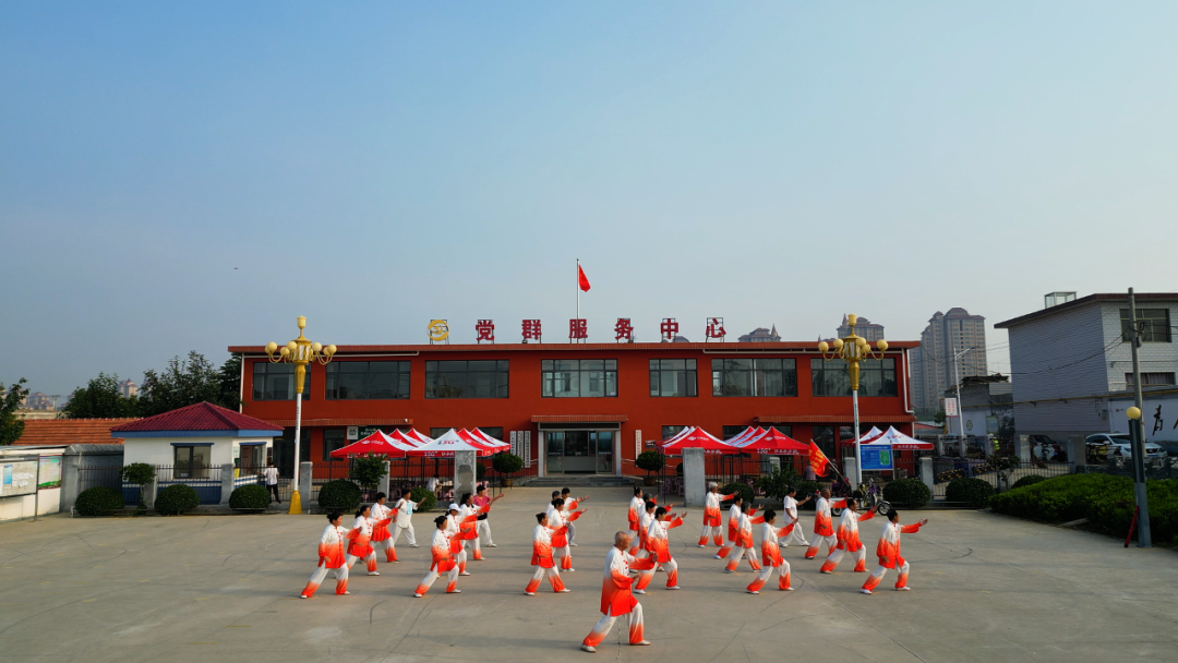 老人们在村党群服务中心做太极操。蓟州文明号供图
