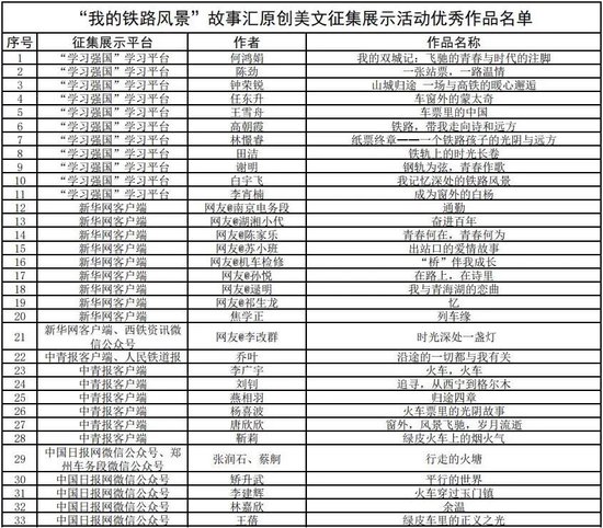 “我的铁路风景”故事汇原创美文征集展示活动优秀作品名单公布