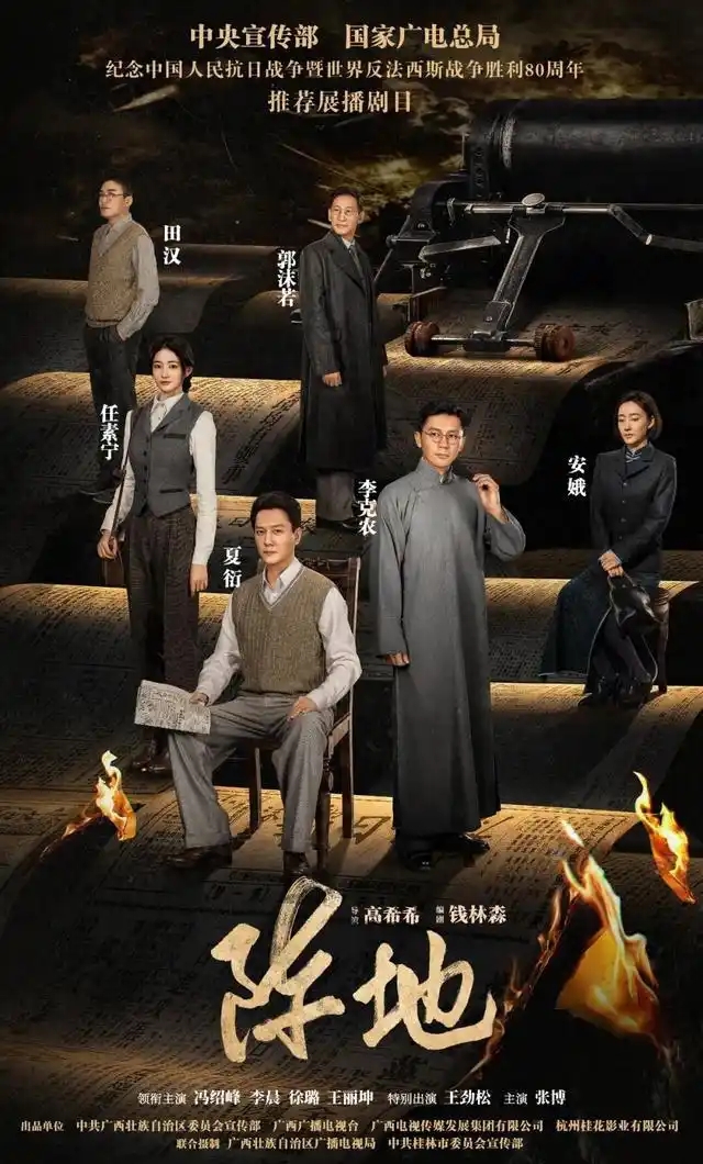 据介绍,电视剧《阵地》再现了《救亡日报》创刊、话剧《一年间》创作、桂剧《梁红玉》改革、陶行知“岩洞教育”等文化事件,塑造了夏衍、郭沫若、田汉、焦菊隐、巴金、徐悲鸿、丰子恺等几十位中国现当代文学、新闻出版、音乐、美术、戏剧史上的文化名人形象,展现了中国知识分子在民族存亡关头的情怀与担当。